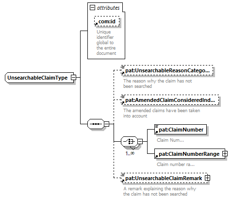 | children | pat:UnsearchableReasonCategory pat:AmendedClaimConsideredIndicator pat:ClaimNumber pat:ClaimNumberRange pat:UnsearchableClaimRemark | ||||||||||||||||||||||