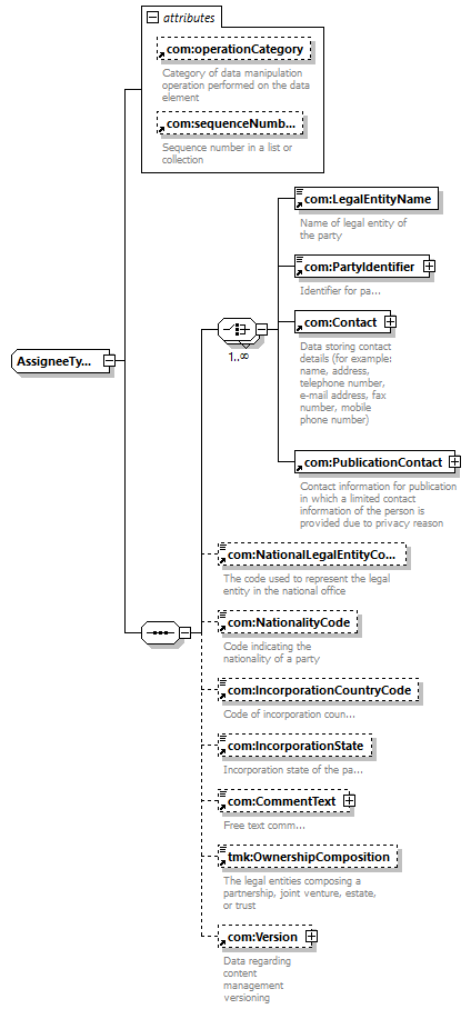 | children | com:LegalEntityName com:PartyIdentifier com:Contact com:PublicationContact com:NationalLegalEntityCode com:NationalityCode com:IncorporationCountryCode com:IncorporationState com:CommentText tmk:OwnershipComposition com:Version | |||||||||||||||||||||||||||||||||