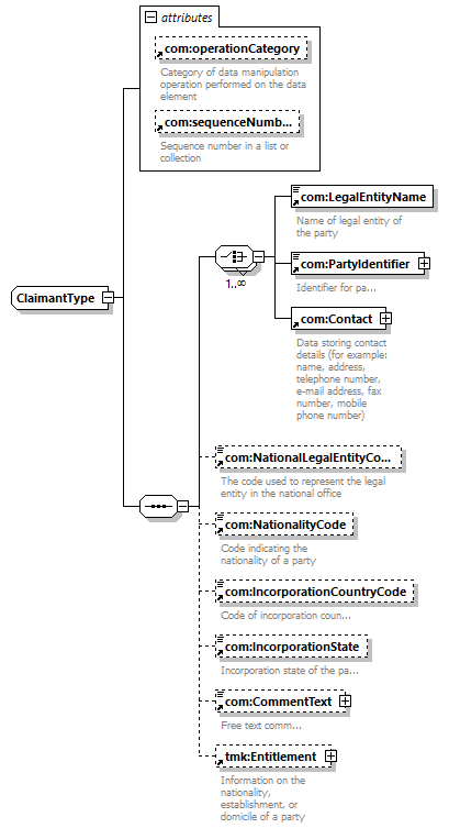 | children | com:LegalEntityName com:PartyIdentifier com:Contact com:NationalLegalEntityCode com:NationalityCode com:IncorporationCountryCode com:IncorporationState com:CommentText tmk:Entitlement | |||||||||||||||||||||||||||||||||
