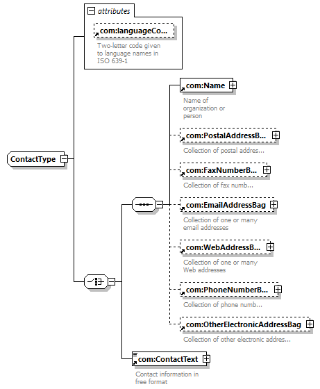| children | com:Name com:PostalAddressBag com:FaxNumberBag com:EmailAddressBag com:WebAddressBag com:PhoneNumberBag com:OtherElectronicAddressBag com:ContactText | ||||||||||||||||||||||