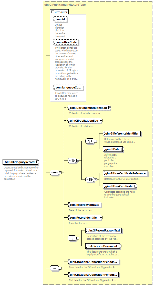 | children | com:DocumentIncludedBag gin:GIPublicationBag gin:GIReferenceIdentifier gin:GIData gin:GIUserCertificateReference gin:GIUserCertificate com:RecordEventDate com:RecordIdentifier gin:GIRecordReasonText tmk:ReasonDocument gin:GINationalOppositionPeriodStartDate gin:GINationalOppositionPeriodEndDate | ||||||||||||||||||||||||||||||||||||||||||||