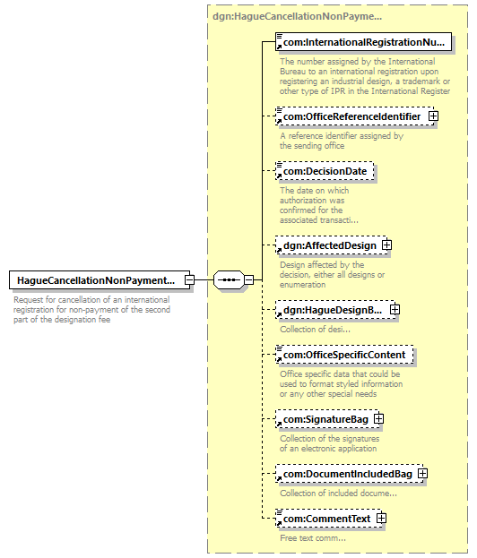 | children | com:InternationalRegistrationNumber com:OfficeReferenceIdentifier com:DecisionDate dgn:AffectedDesign dgn:HagueDesignBag com:OfficeSpecificContent com:SignatureBag com:DocumentIncludedBag com:CommentText | ||||