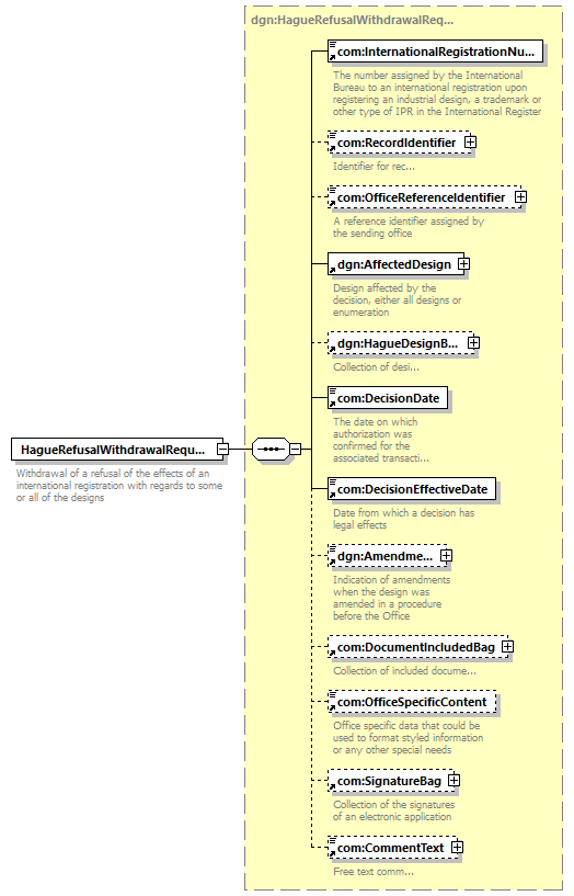 | children | com:InternationalRegistrationNumber com:RecordIdentifier com:OfficeReferenceIdentifier dgn:AffectedDesign dgn:HagueDesignBag com:DecisionDate com:DecisionEffectiveDate dgn:Amendment com:DocumentIncludedBag com:OfficeSpecificContent com:SignatureBag com:CommentText | ||||