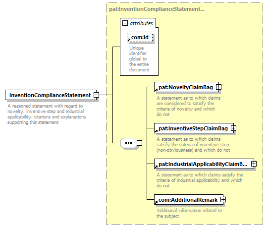 | children | pat:NoveltyClaimBag pat:InventiveStepClaimBag pat:IndustrialApplicabilityClaimBag com:AdditionalRemark | ||||||||||||||||||||||