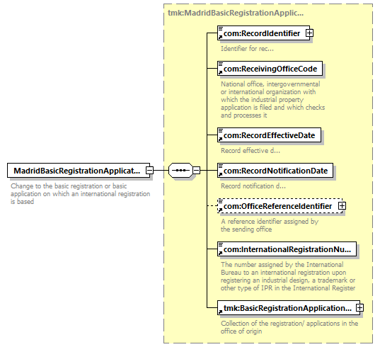| children | com:RecordIdentifier com:ReceivingOfficeCode com:RecordEffectiveDate com:RecordNotificationDate com:OfficeReferenceIdentifier com:InternationalRegistrationNumber tmk:BasicRegistrationApplicationBag | ||||