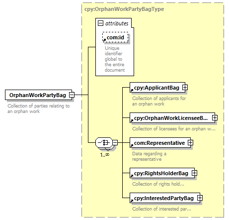 | children | cpy:ApplicantBag cpy:OrphanWorkLicenseeBag com:Representative cpy:RightsHolderBag cpy:InterestedPartyBag | ||||||||||||||||||||||
