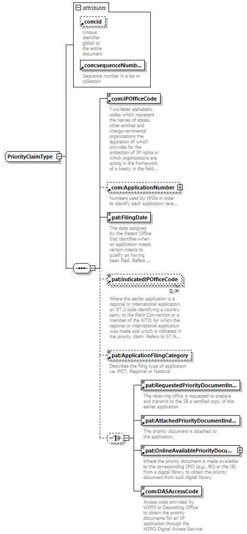 | children | com:IPOfficeCode com:ApplicationNumber pat:FilingDate pat:IndicatedIPOfficeCode pat:ApplicationFilingCategory pat:RequestedPriorityDocumentIndicator pat:AttachedPriorityDocumentIndicator pat:OnlineAvailablePriorityDocumentIndicator com:DASAccessCode | |||||||||||||||||||||||||||||||||