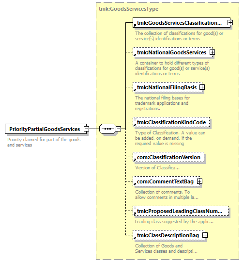| children | tmk:GoodsServicesClassificationBag tmk:NationalGoodsServices tmk:NationalFilingBasis tmk:ClassificationKindCode com:ClassificationVersion com:CommentTextBag tmk:ProposedLeadingClassNumber tmk:ClassDescriptionBag | ||||