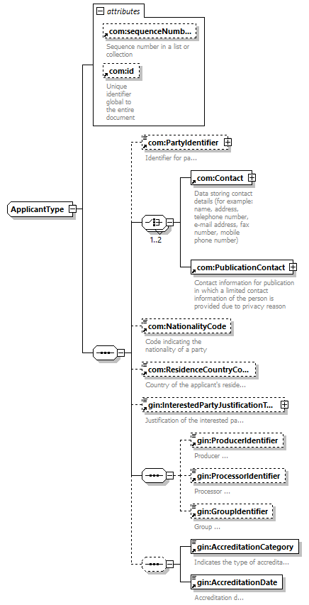 | children | com:PartyIdentifier com:Contact com:PublicationContact com:NationalityCode com:ResidenceCountryCode gin:InterestedPartyJustificationText gin:ProducerIdentifier gin:ProcessorIdentifier gin:GroupIdentifier gin:AccreditationCategory gin:AccreditationDate | |||||||||||||||||||||||||||||||||