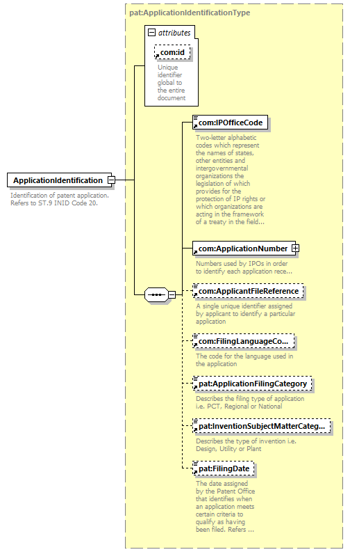 | children | com:IPOfficeCode com:ApplicationNumber com:ApplicantFileReference com:FilingLanguageCode pat:ApplicationFilingCategory pat:InventionSubjectMatterCategory pat:FilingDate | ||||||||||||||||||||||