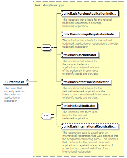 | children | tmk:BasisForeignApplicationIndicator tmk:BasisForeignRegistrationIndicator tmk:BasisUseIndicator tmk:BasisIntentToUseIndicator tmk:NoBasisIndicator tmk:BasisInternationalRegistrationIndicator | ||||