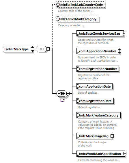 | children | tmk:EarlierMarkCountryCode tmk:EarlierMarkCategory tmk:BaseGoodsServicesBag com:ApplicationNumber com:RegistrationNumber com:ApplicationDate com:RegistrationDate tmk:MarkFeatureCategory tmk:MarkImageBag tmk:WordMarkSpecification | ||||