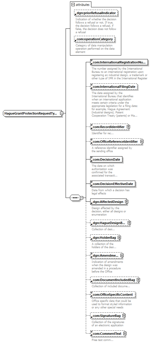 | children | com:InternationalRegistrationNumber com:InternationalFilingDate com:RecordIdentifier com:OfficeReferenceIdentifier com:DecisionDate com:DecisionEffectiveDate dgn:AffectedDesign dgn:HagueDesignBag dgn:HolderBag dgn:Amendment com:DocumentIncludedBag com:OfficeSpecificContent com:SignatureBag com:CommentText | |||||||||||||||||||||||||||||||||