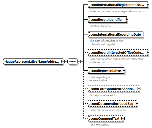 | children | com:InternationalRegistrationNumberBag com:RecordIdentifier com:InternationalRecordingDate com:RecordInterestedOfficeCodeBag com:Representative com:CorrespondenceAddress com:DocumentIncludedBag com:CommentText | ||||