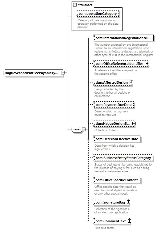 | children | com:InternationalRegistrationNumber com:OfficeReferenceIdentifier dgn:AffectedDesign com:PaymentDueDate dgn:HagueDesignBag com:DecisionEffectiveDate com:BusinessEntityStatusCategory com:OfficeSpecificContent com:SignatureBag com:CommentText | ||||||||||||||||||||||