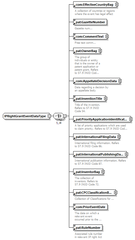 | namespace | http://www.wipo.int/standards/XMLSchema/ST96/Patent | ||||