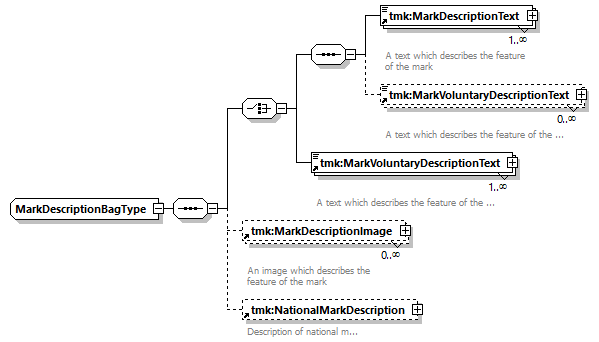 | children | tmk:MarkDescriptionText tmk:MarkVoluntaryDescriptionText tmk:MarkDescriptionImage tmk:NationalMarkDescription | ||||
