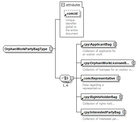 | children | cpy:ApplicantBag cpy:OrphanWorkLicenseeBag com:Representative cpy:RightsHolderBag cpy:InterestedPartyBag | ||||||||||||||||||||||