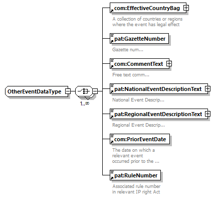 | children | com:EffectiveCountryBag pat:GazetteNumber com:CommentText pat:NationalEventDescriptionText pat:RegionalEventDescriptionText com:PriorEventDate pat:RuleNumber | ||||
