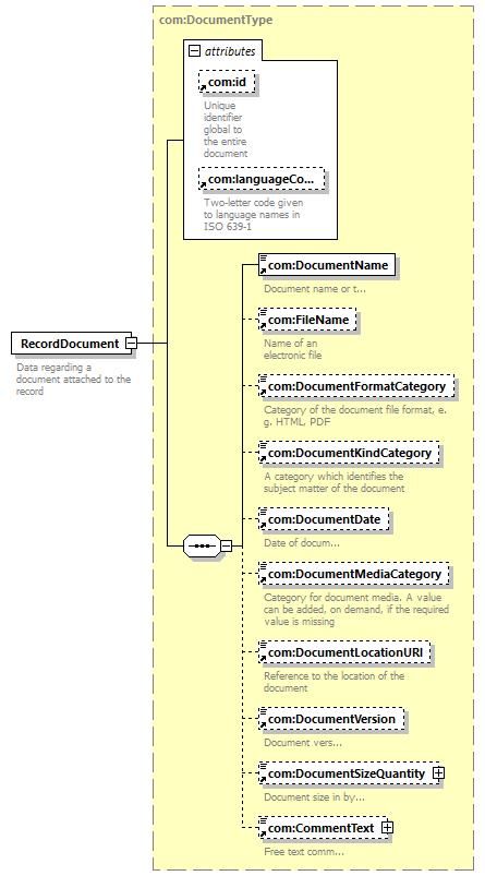 | children | com:DocumentName com:FileName com:DocumentFormatCategory com:DocumentKindCategory com:DocumentDate com:DocumentMediaCategory com:DocumentLocationURI com:DocumentVersion com:DocumentSizeQuantity com:CommentText | |||||||||||||||||||||||||||||||||