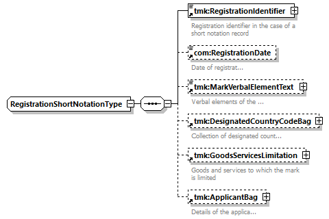 | children | tmk:RegistrationIdentifier com:RegistrationDate tmk:MarkVerbalElementText tmk:DesignatedCountryCodeBag tmk:GoodsServicesLimitation tmk:ApplicantBag | ||||