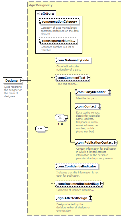 | children | com:NationalityCode com:CommentText com:PartyIdentifier com:Contact com:PublicationContact com:ConfidentialIndicator com:DocumentIncludedBag dgn:AffectedDesign | |||||||||||||||||||||||||||||||||