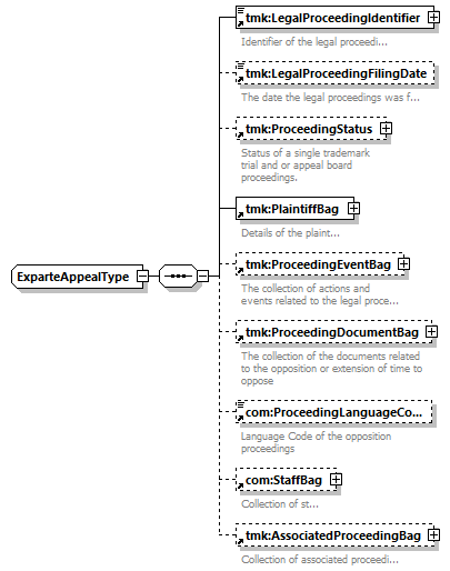 | children | tmk:LegalProceedingIdentifier tmk:LegalProceedingFilingDate tmk:ProceedingStatus tmk:PlaintiffBag tmk:ProceedingEventBag tmk:ProceedingDocumentBag com:ProceedingLanguageCode com:StaffBag tmk:AssociatedProceedingBag | ||||