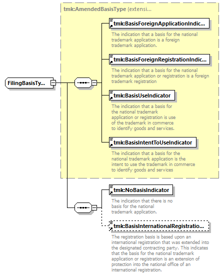 | children | tmk:BasisForeignApplicationIndicator tmk:BasisForeignRegistrationIndicator tmk:BasisUseIndicator tmk:BasisIntentToUseIndicator tmk:NoBasisIndicator tmk:BasisInternationalRegistrationIndicator | ||||