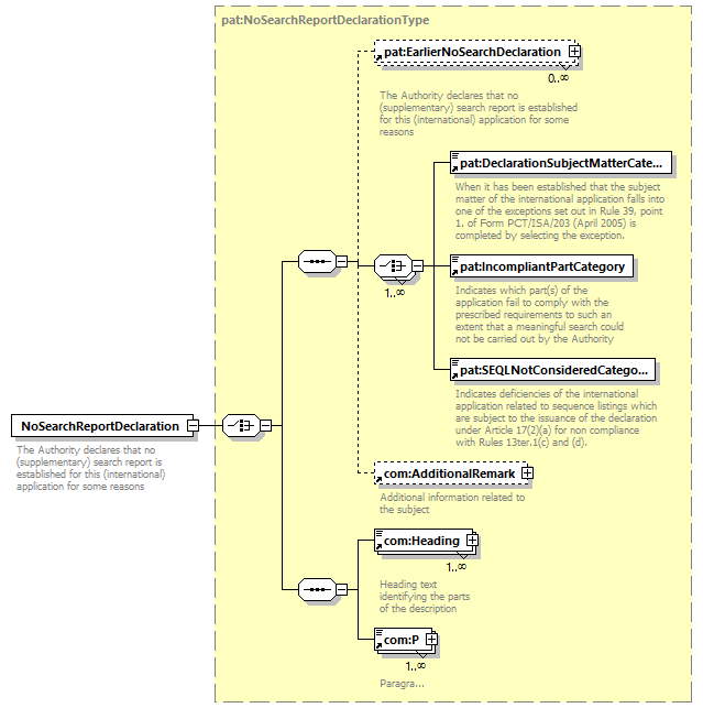 | children | pat:EarlierNoSearchDeclaration pat:DeclarationSubjectMatterCategory pat:IncompliantPartCategory pat:SEQLNotConsideredCategory com:AdditionalRemark com:Heading com:P | ||||