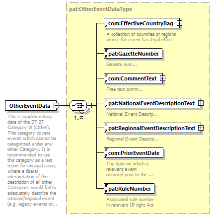| children | com:EffectiveCountryBag pat:GazetteNumber com:CommentText pat:NationalEventDescriptionText pat:RegionalEventDescriptionText com:PriorEventDate pat:RuleNumber | ||||