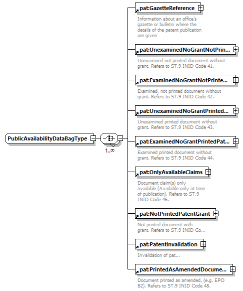 </xsd:element> <xsd:element ref="pat:UnexaminedNoGrantNotPrintedPatentDocument">