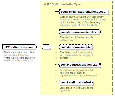 | children | pat:MarketingAuthorizationGeographicCode com:AuthorizationIdentifier com:AuthorizationDate com:ProductDescriptionText com:LegalProvisionText | ||||