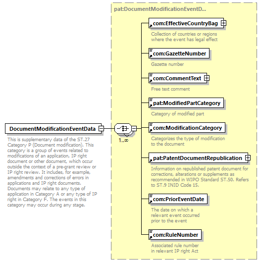 | children | com:EffectiveCountryBag com:GazetteNumber com:CommentText pat:ModifiedPartCategory com:ModificationCategory pat:PatentDocumentRepublication com:PriorEventDate com:RuleNumber | ||||