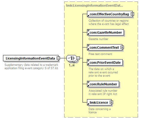 | children | com:EffectiveCountryBag com:GazetteNumber com:CommentText com:PriorEventDate com:RuleNumber tmk:Licence | ||||