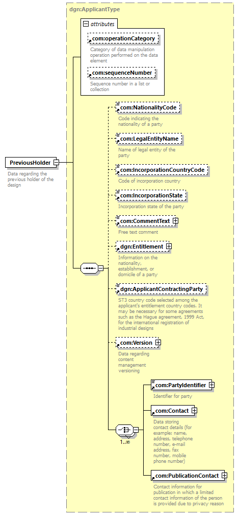 | children | com:NationalityCode com:LegalEntityName com:IncorporationCountryCode com:IncorporationState com:CommentText dgn:Entitlement dgn:ApplicantContractingParty com:Version com:PartyIdentifier com:Contact com:PublicationContact | |||||||||||||||||||||||||||||||||