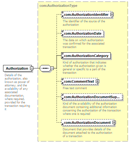 | children | com:AuthorizationIdentifier com:AuthorizationDate com:AuthorizationCategory com:CommentText com:AuthorizationDocumentSupplyCategory com:AuthorizationDocument | ||||