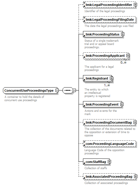| children | tmk:LegalProceedingIdentifier tmk:LegalProceedingFilingDate tmk:ProceedingStatus tmk:ProceedingApplicant tmk:Registrant tmk:ProceedingEvent tmk:ProceedingDocumentBag com:ProceedingLanguageCode com:StaffBag tmk:AssociatedProceedingBag | ||||
