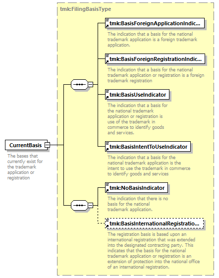 | children | tmk:BasisForeignApplicationIndicator tmk:BasisForeignRegistrationIndicator tmk:BasisUseIndicator tmk:BasisIntentToUseIndicator tmk:NoBasisIndicator tmk:BasisInternationalRegistrationIndicator | ||||