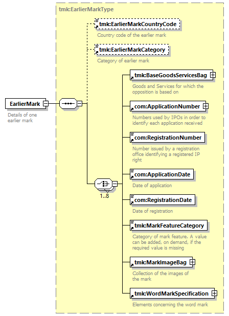 | children | tmk:EarlierMarkCountryCode tmk:EarlierMarkCategory tmk:BaseGoodsServicesBag com:ApplicationNumber com:RegistrationNumber com:ApplicationDate com:RegistrationDate tmk:MarkFeatureCategory tmk:MarkImageBag tmk:WordMarkSpecification | ||||
