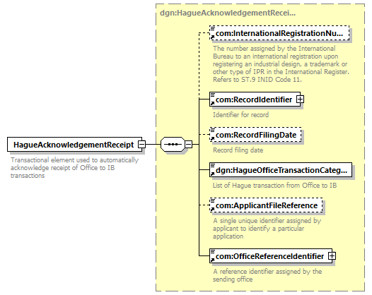 | children | com:InternationalRegistrationNumber com:RecordIdentifier com:RecordFilingDate dgn:HagueOfficeTransactionCategory com:ApplicantFileReference com:OfficeReferenceIdentifier | ||||