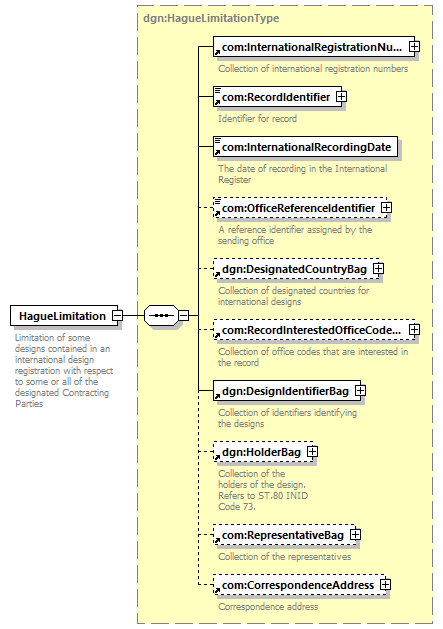 | children | com:InternationalRegistrationNumberBag com:RecordIdentifier com:InternationalRecordingDate com:OfficeReferenceIdentifier dgn:DesignatedCountryBag com:RecordInterestedOfficeCodeBag dgn:DesignIdentifierBag dgn:HolderBag com:RepresentativeBag com:CorrespondenceAddress | ||||