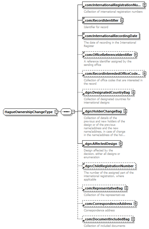 | children | com:InternationalRegistrationNumberBag com:RecordIdentifier com:InternationalRecordingDate com:OfficeReferenceIdentifier com:RecordInterestedOfficeCodeBag dgn:DesignatedCountryBag dgn:HolderChangeBag dgn:AffectedDesign dgn:ChildRegistrationNumber com:RepresentativeBag com:CorrespondenceAddress com:DocumentIncludedBag | ||||