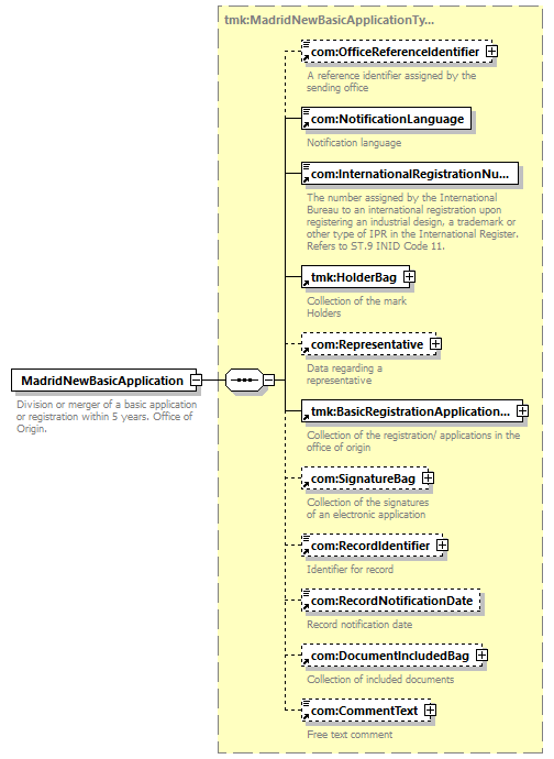 | children | com:OfficeReferenceIdentifier com:NotificationLanguage com:InternationalRegistrationNumber tmk:HolderBag com:Representative tmk:BasicRegistrationApplicationBag com:SignatureBag com:RecordIdentifier com:RecordNotificationDate com:DocumentIncludedBag com:CommentText | ||||