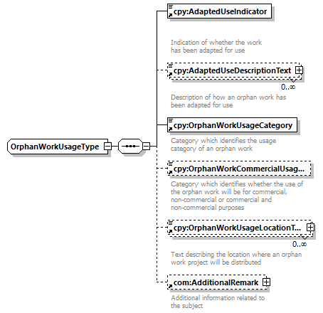 | children | cpy:AdaptedUseIndicator cpy:AdaptedUseDescriptionText cpy:OrphanWorkUsageCategory cpy:OrphanWorkCommercialUsageCategory cpy:OrphanWorkUsageLocationText com:AdditionalRemark | ||||