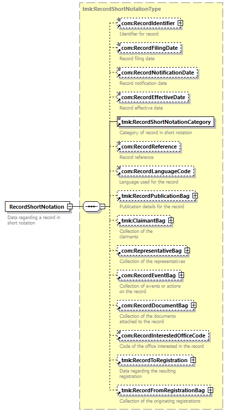| children | com:RecordIdentifier com:RecordFilingDate com:RecordNotificationDate com:RecordEffectiveDate tmk:RecordShortNotationCategory com:RecordReference com:RecordLanguageCode tmk:RecordPublicationBag tmk:ClaimantBag com:RepresentativeBag com:RecordEventBag com:RecordDocumentBag com:RecordInterestedOfficeCode tmk:RecordToRegistration tmk:RecordFromRegistrationBag | ||||
