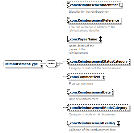 | children | com:ReimbursementIdentifier com:ReimbursementReference com:PayeeName com:ReimbursementStatusCategory com:CommentText com:ReimbursementDate com:ReimbursementModeCategory com:ReimbursementFeeBag | ||||