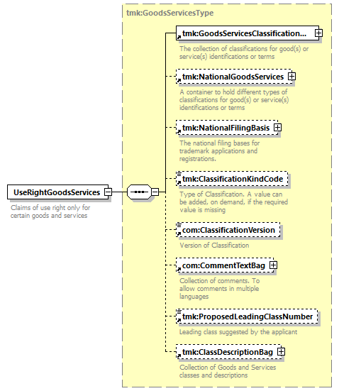 | children | tmk:GoodsServicesClassificationBag tmk:NationalGoodsServices tmk:NationalFilingBasis tmk:ClassificationKindCode com:ClassificationVersion com:CommentTextBag tmk:ProposedLeadingClassNumber tmk:ClassDescriptionBag | ||||