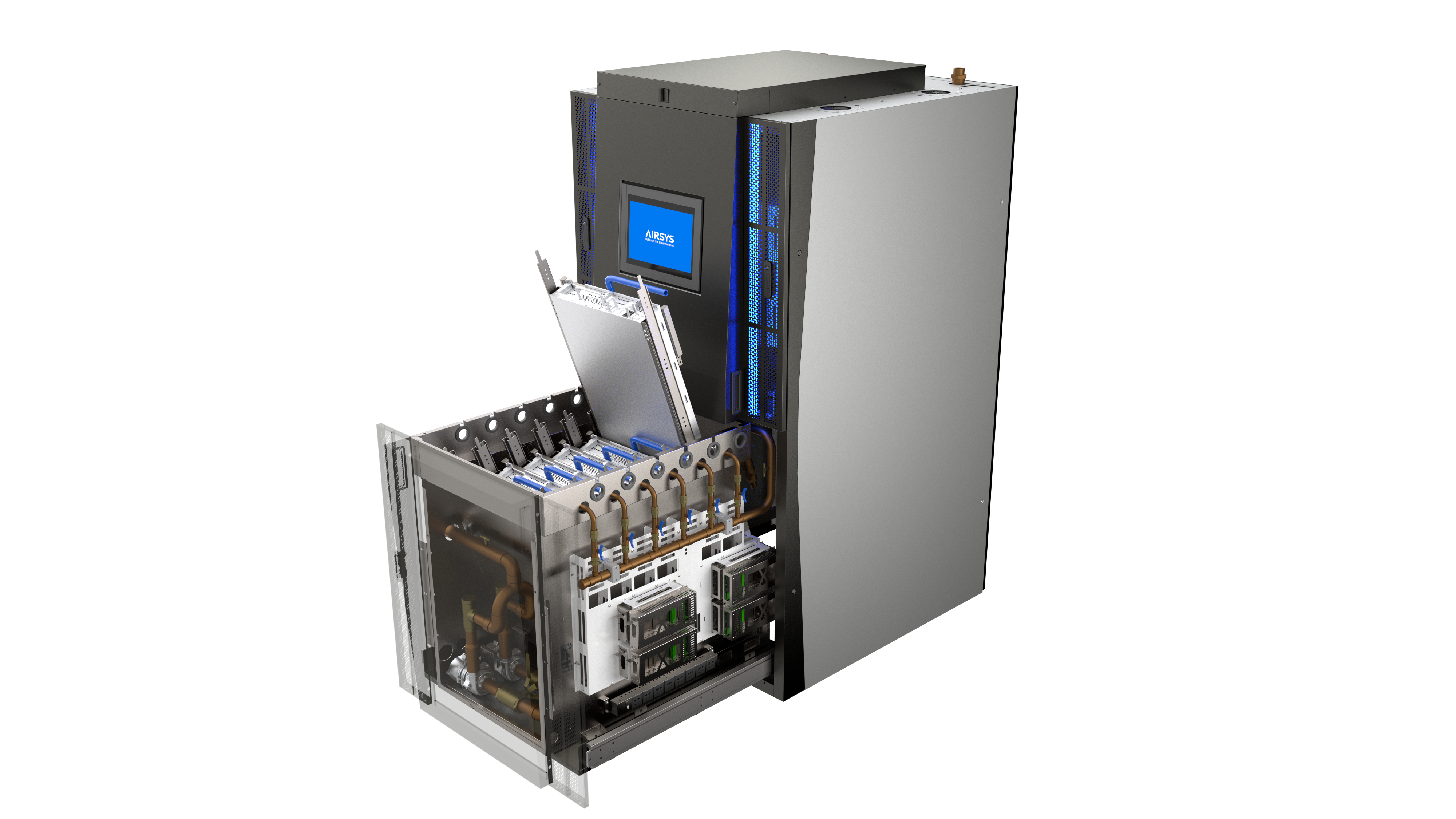 AIRSYS’ patented cooling system, LiquidRack, is the world’s first spray liquid cooling solution that offers 100 percent heat recovery, capturing waste heat as usable hot water. The technology features information and communication technology for precise temperature control, and sprays fluid directly onto central processing units to eliminate uneven temperatures and remove heat faster.