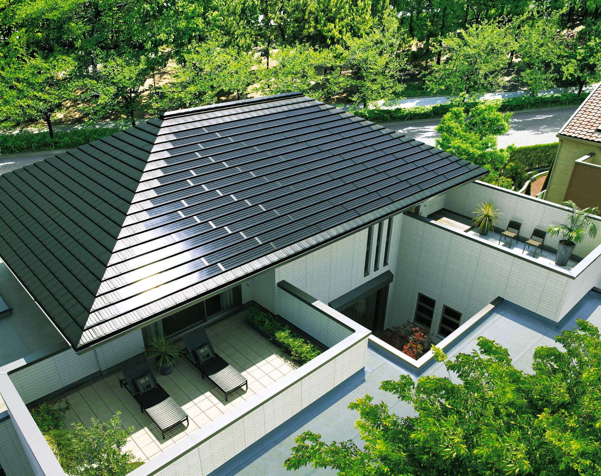 Energy supply: curved solar roof tiles