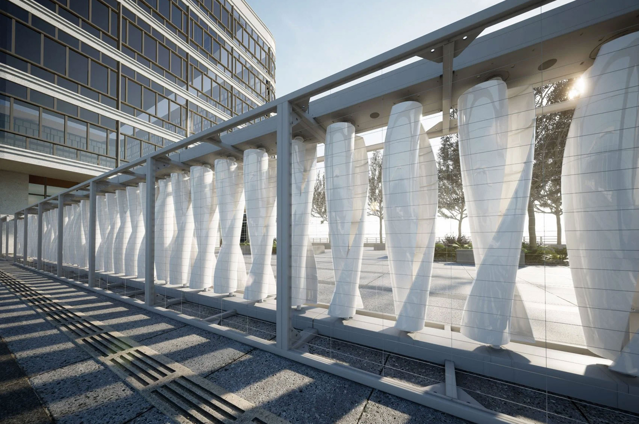 Airiva is a modular, scalable and smart wind energy system consisting of an array of vertical wind turbines within a contemporary frame. It is designed to integrate within the architecture and infrastructure of urban and suburban landscapes. Complementing and supplementing other energy technologies, the electricity generated can be used directly on-site, stored or fed into the grid. The modular design can be scaled to suit site-specific needs, making it suitable for a broad diversity of applications, including commercial buildings and campuses, highway, rail and air transport networks, marinas and harbors. Airiva is currently a patented prototype and has a manufacturing target to use a minimum of 80% recycled and post-consumer materials compared with the frequent high use of virgin materials seen across the renewable energy category.